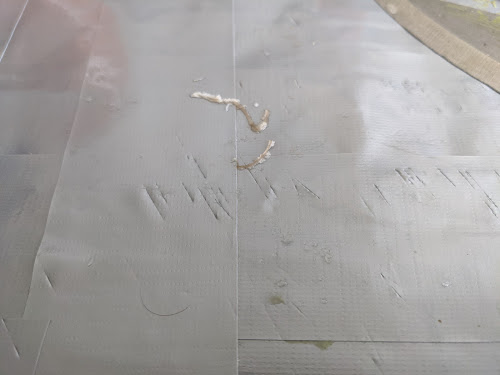 We'll see how long it lasts. The good thing is, if it starts to fray or deteriorate too quickly, it can always be patched up with more duct tape. It rolls up, making it easier to find a place to store it, and wipes clean, keeping it nice and hygienic in this dangerous times. Less could be said for its predecessor, which looks like this:
